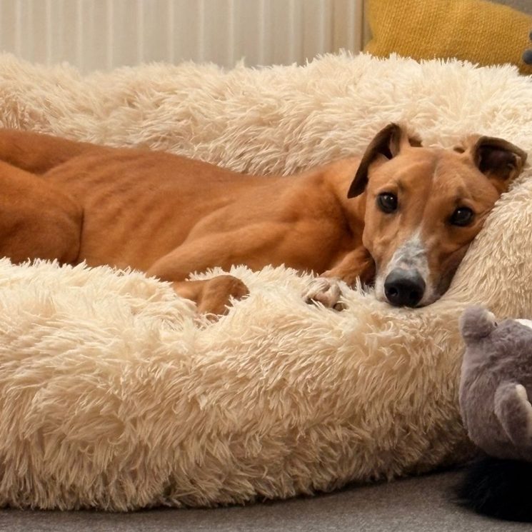 Hope is a beautiful little greyhound who has joined us at Greyhound Rescue North East. Young, bright, and full of charm, she’s quickly captured hearts with her gentle nature and playful spirit. Hope loves to be around people and takes everything in her stride — she’s curious, affectionate, and always happy to see a friendly face.