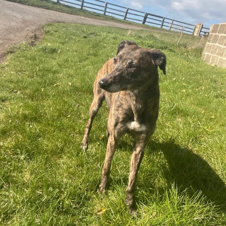 Hope is a beautiful little greyhound who has joined us at Greyhound Rescue North East. Young, bright, and full of charm, she’s quickly captured hearts with her gentle nature and playful spirit. Hope loves to be around people and takes everything in her stride — she’s curious, affectionate, and always happy to see a friendly face.